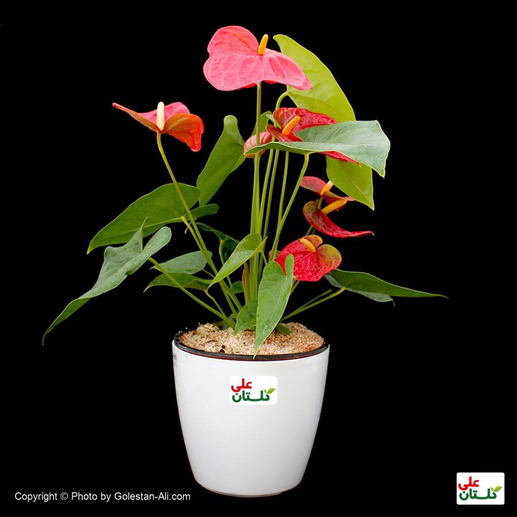آنتوریوم ۲۰۰ تومن گلدان پلاستیک با زیره ۳۰ تومن